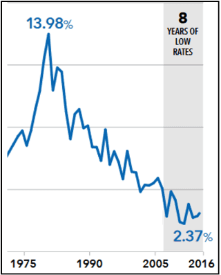 Again, here in early 2017, we find interest rates hovering near historically low numbers as in the late 1940s.