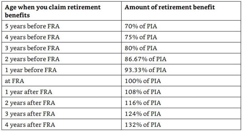 Note: For those born 1960 or later, the maximum amount of benefits is 124%.