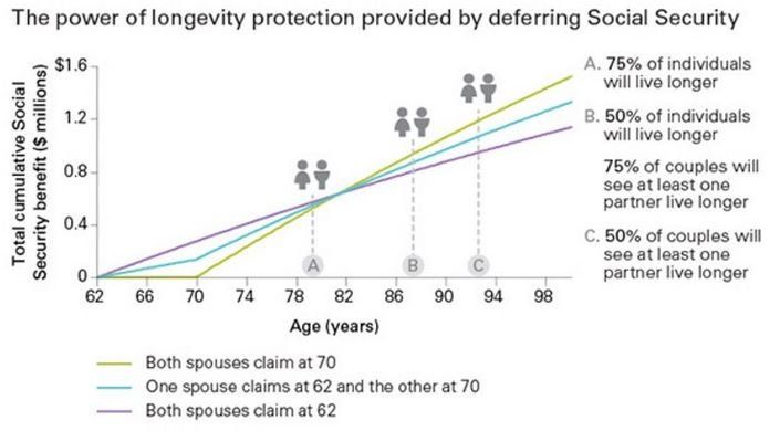Which claiming strategy is best for an individual or couple depends on several factors such as age, SS work record of both spouses (if married), life goals, divorce details, widow/widower details, health, life expectancy, other sources of income, taxes, and estate planning considerations. Some questions to ask are: