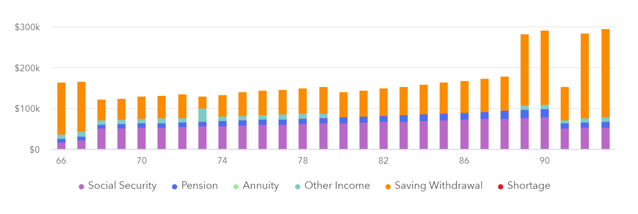 Figure 3. Mid-60s couple in which the higher wage earner delays Social Security to age 68